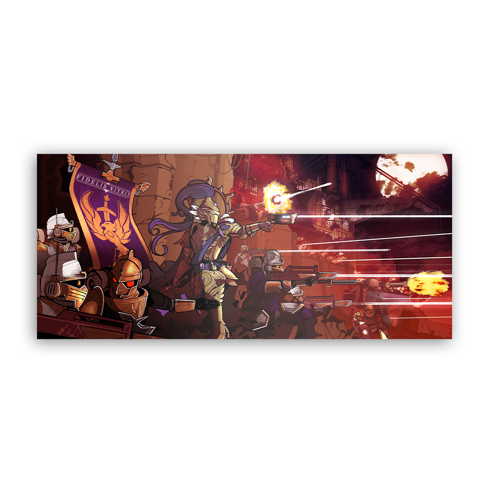 The fighting may be intense, but the Tempris Auxilia stands strong! Support your brothers and hold the line with this poster!